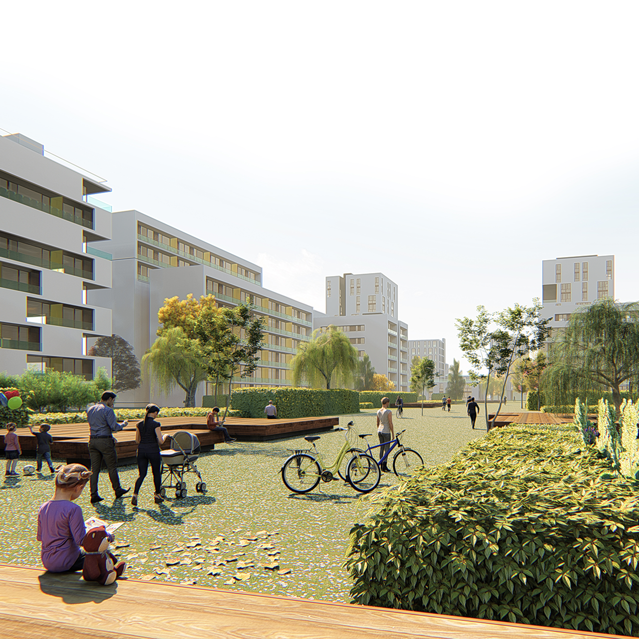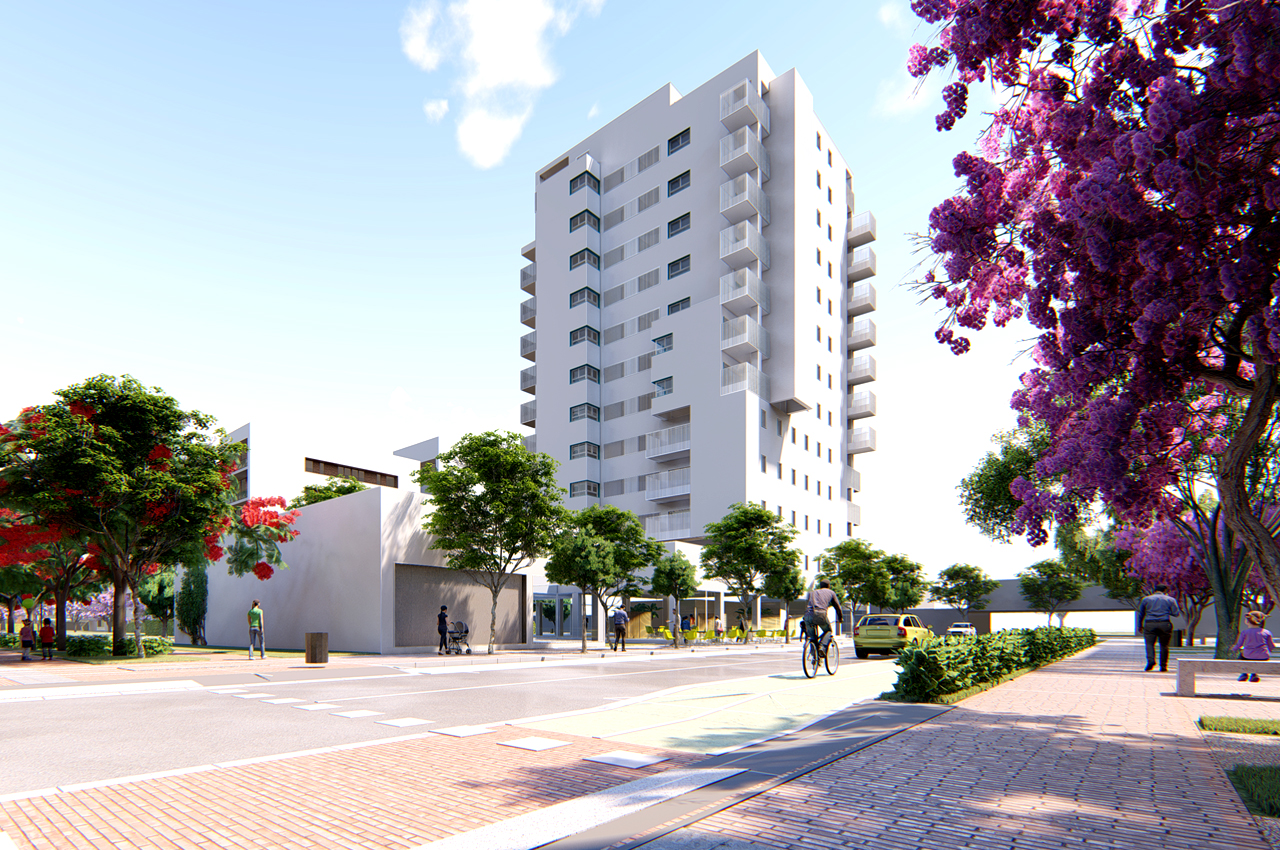 - Identidad en espacios públicos de referencia como la red mallada de espacios verdes y parques lineales que conectan con elementos existentes como el parque de las riberas del rio Guadaira, la relación con el histórico Cortijo del Cuarto y el nuevo acceso a través de los antiguos silos convertidos en la puerta de Palmas Altas, cosen el sector con el histórico barrio de Bellavista impregnándolo de elementos pertenecientes al imaginario histórico de la ciudad de Sevilla.